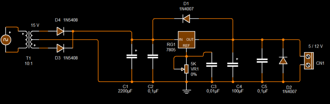 TRASFORMATORE CON 7805 VARIABILE
